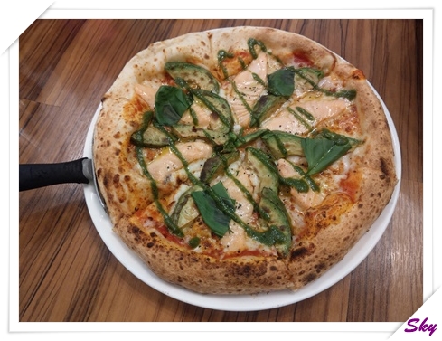 另外, 點了羅勒醬鮭魚牛油果披薩.