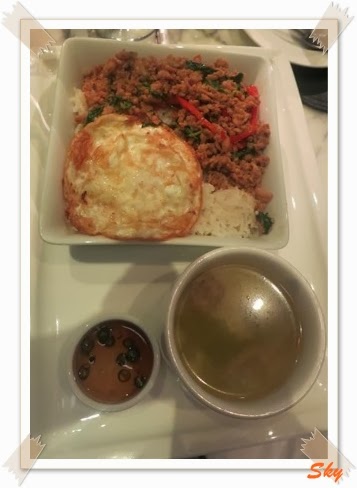香草辣椒炒雞肉碎配白飯賣相較為普通, 但估唔到味道不錯呀. 對於唔食得辣的我, 這個只是少許辣, 令我更醒胃.