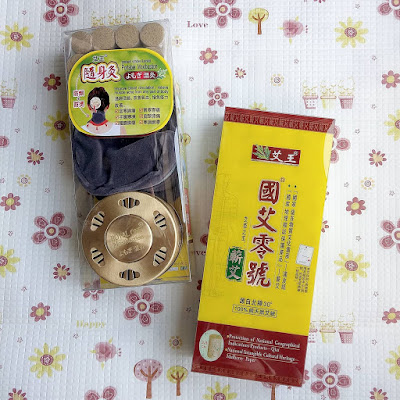 艾王牌“隨身灸”套裝,當中含:艾柱12粒、濾煙袋、銅艾灸合。