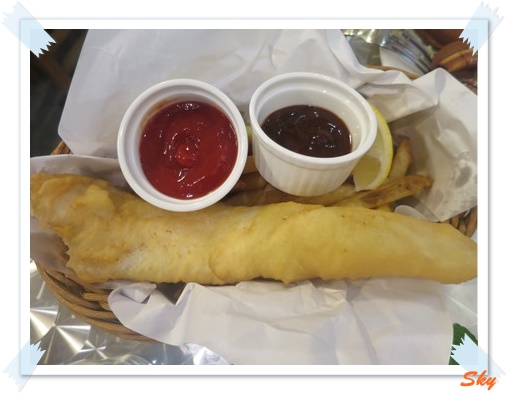炸魚配薯條熱辣辣上枱. 這裡炸魚的做法和我平日食的有點不同.