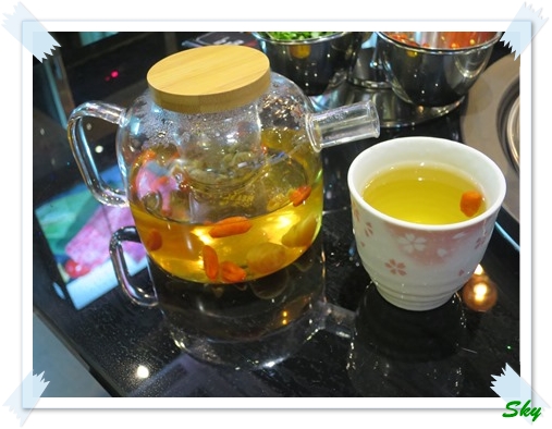 我好鍾意佢地的熱茶是選用一壼壼的桂圓杞子茶, 可以滋潤一下喉嚨.
