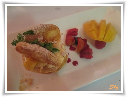 最後, 我點了個甜品, 叫芒果拿破侖配紅莓.