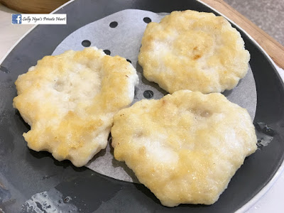 這個煎墨魚餅外表很吸引呀,煎得金黃金黃的