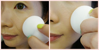 就唧於手心再用lightbulb化妝綿沾上粉底綿