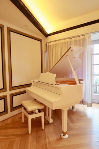台邊有一台純白鋼琴,可以請琴師現場彈奏。