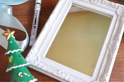 材料只有3樣,一支白色油性Marker筆、絲帶及鏡子一塊。鏡子在Living Plaza或者$12店都有有很多選擇,而油性Marker筆在一般文具店、書局就可以買到。