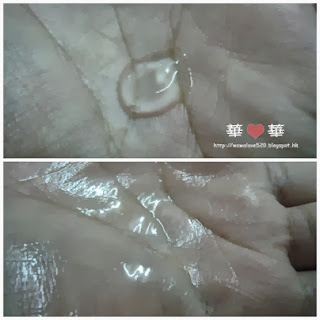 透明凝膠狀,質感十分水凝易推,延伸性很不錯,每次一粒黃豆份量便足夠。
